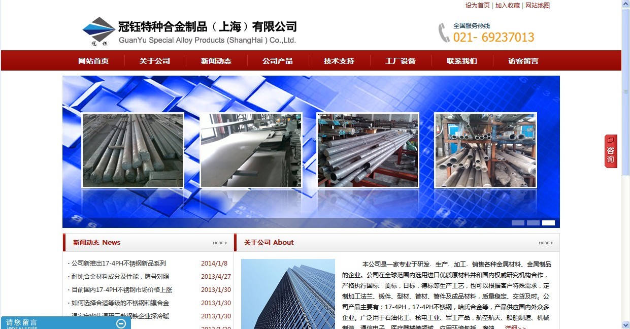10个工作日的艰辛劳动,上海网站设计公司-润壤网络完成对冠钰特种合金制品上海公司网站设计,整个网站白色底色,红色点缀,ASP+ACCESS程序开发,整个网站转户为静态页面,访问速度超快。有利于SEO搜索引擎快速抓取信息。